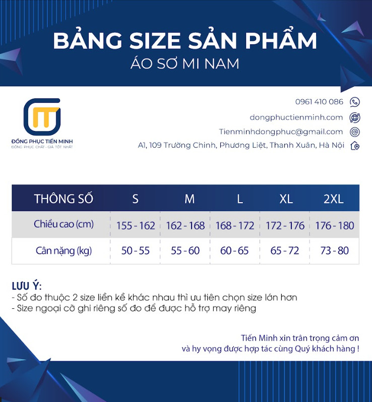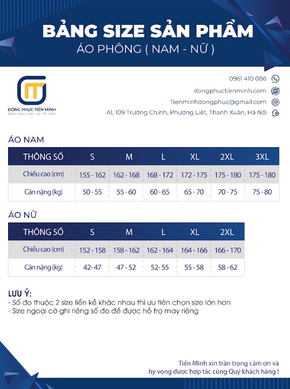 Để lựa chọn được mẫu đồng phục đẹp, vừa vặn với form dáng, đồng phục Tiến Minh xin tư vấn cách chọn size áo đúng cho nam và nữ theo chiều cao và cân nặng.