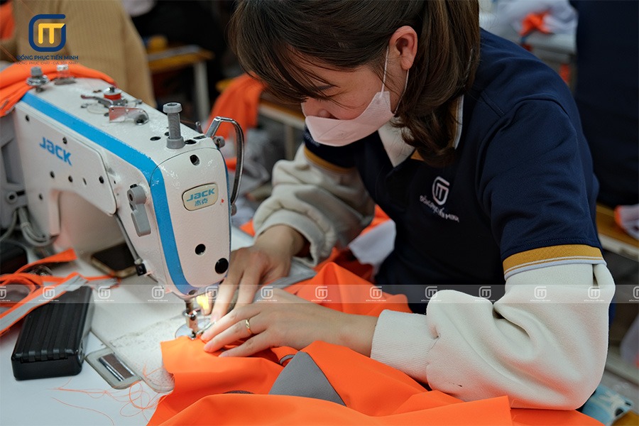 Logo in tại đồng phục Tiến Minh sắc nét, chuẩn tỷ lệ.