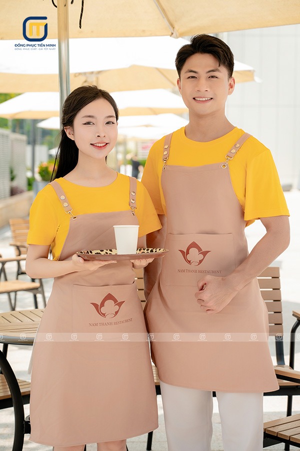 - Tăng nhận diện thương hiệu: Tạp dề có thể được in/thêu logo, tên nhà hàng, giúp khách hàng dễ dàng nhận diện và ghi nhớ thương hiệu.